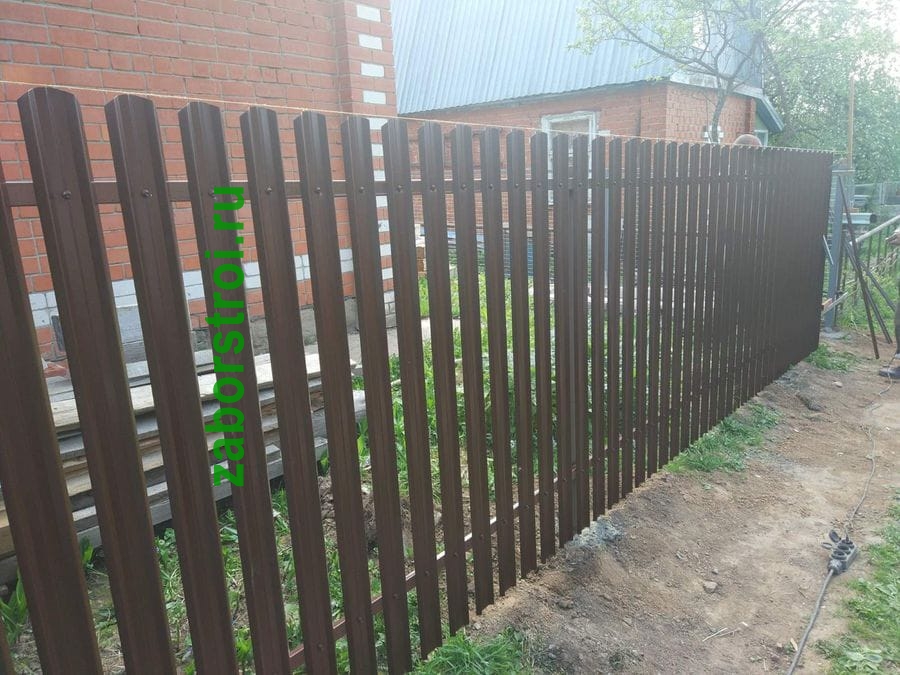 Металлический забор из евроштакетника 65 метров