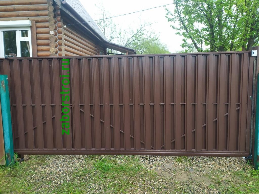 Откатные ворота из евроштакетника пример 3