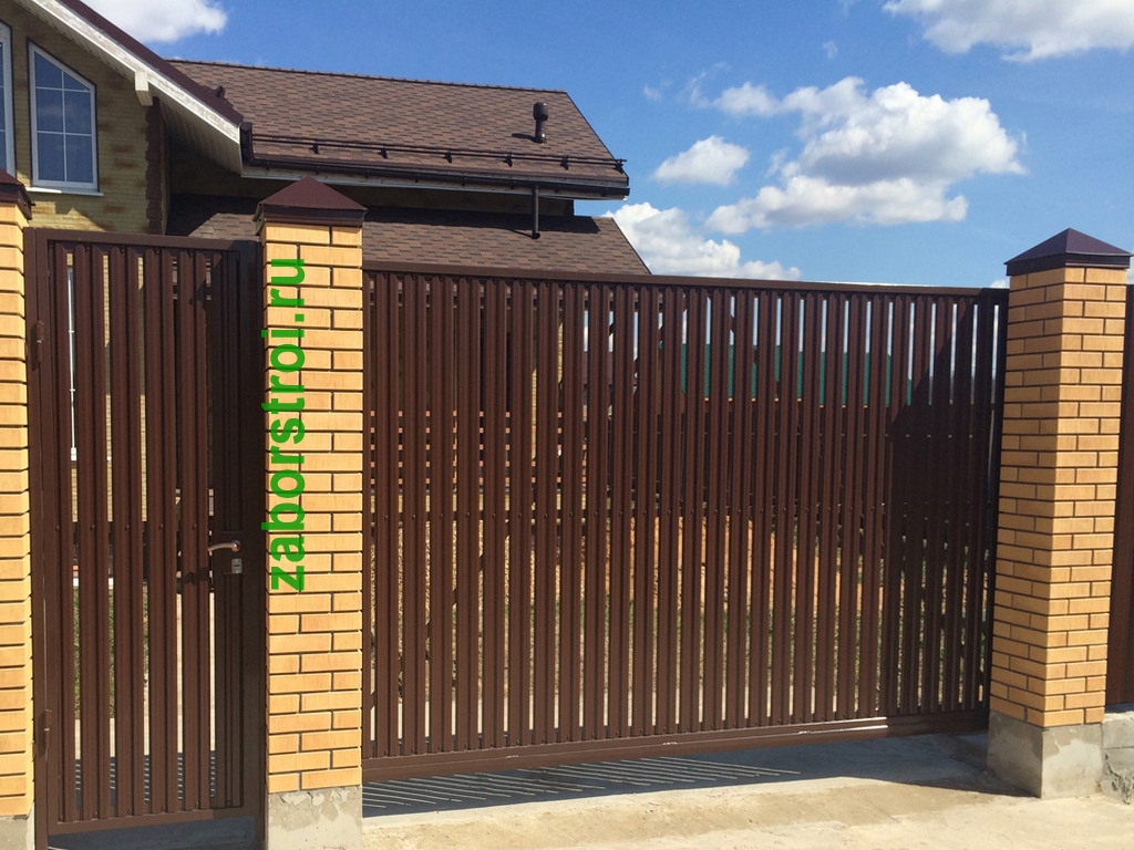 Откатные ворота из евроштакетника пример 9