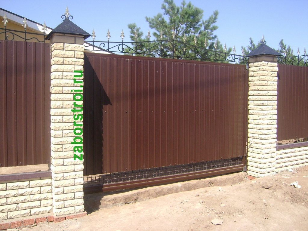Откатные ворота из профнастила пример 2
