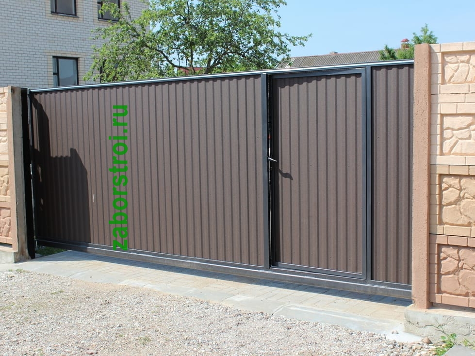 Откатные ворота с калиткой пример 7