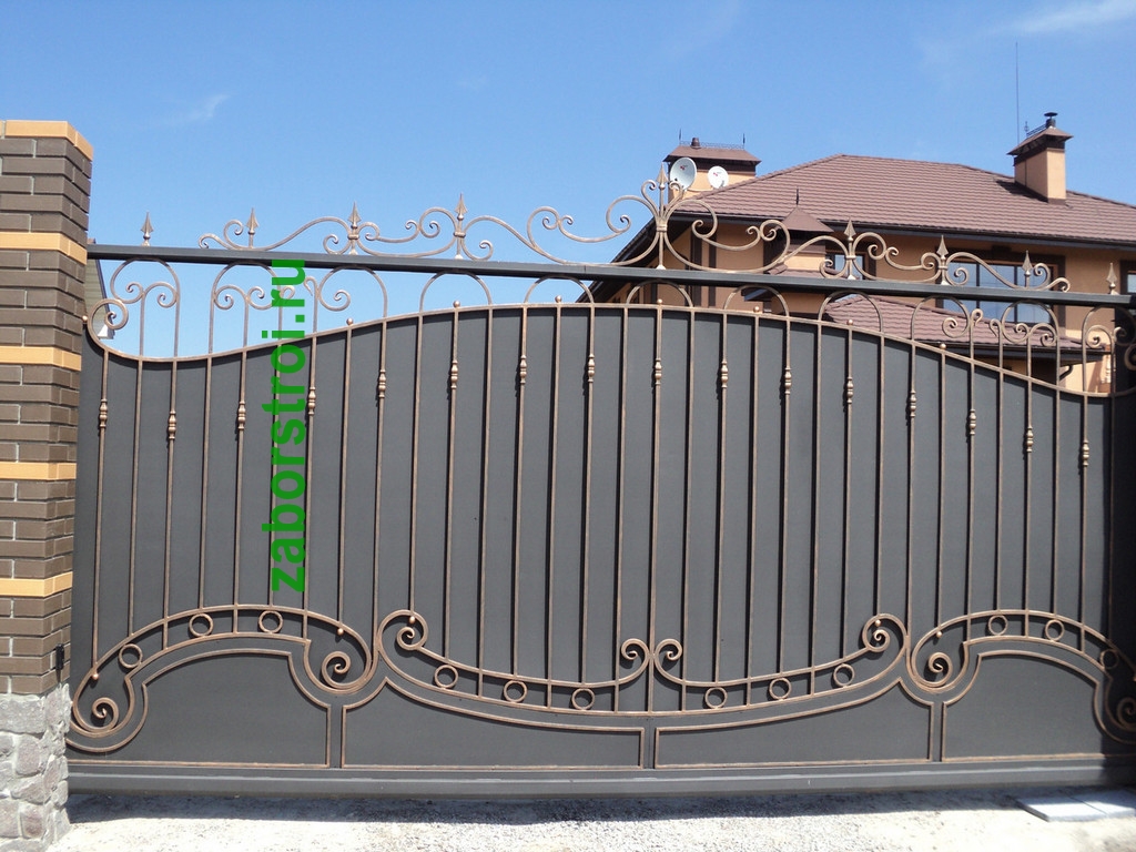 Откатные ворота с ковкой пример 5