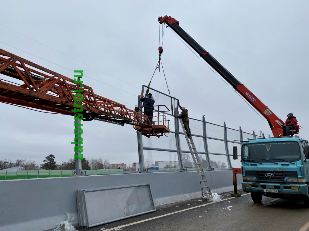 Прозрачный шумозащитный забор Развязка М1 27км