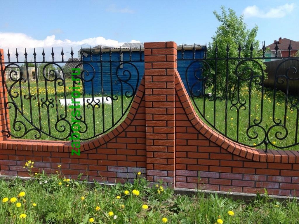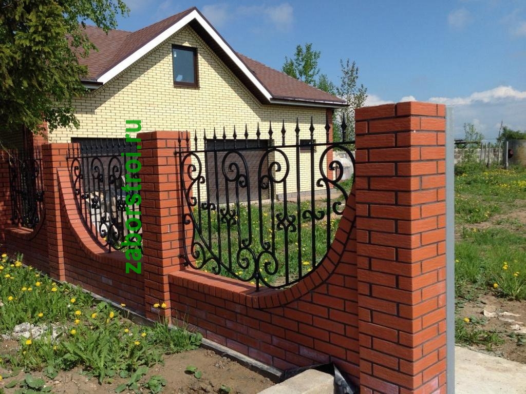 Сварные заборы с кирпичными столбами 90 метров