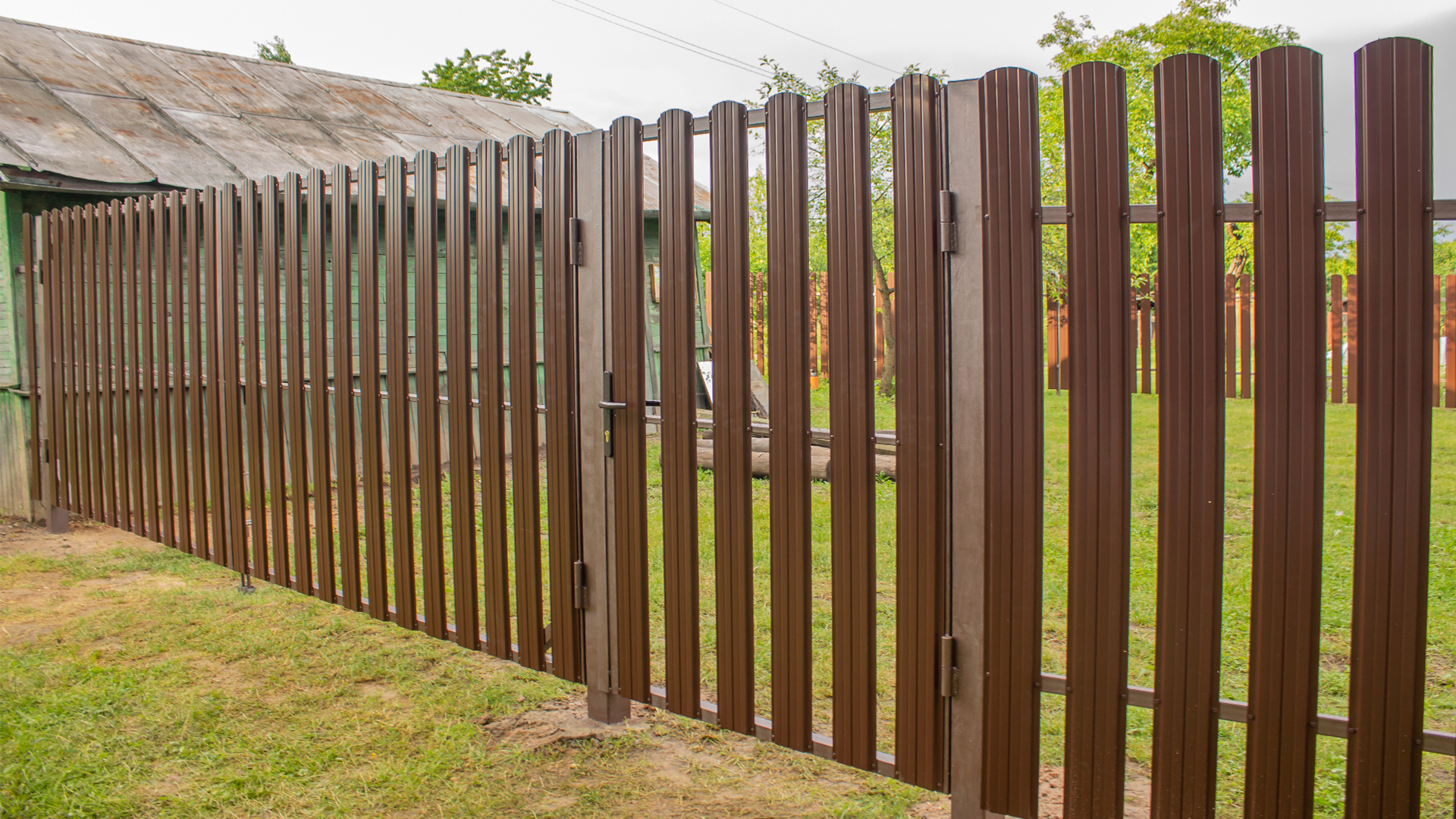 Ворота из евроштакетника распашные