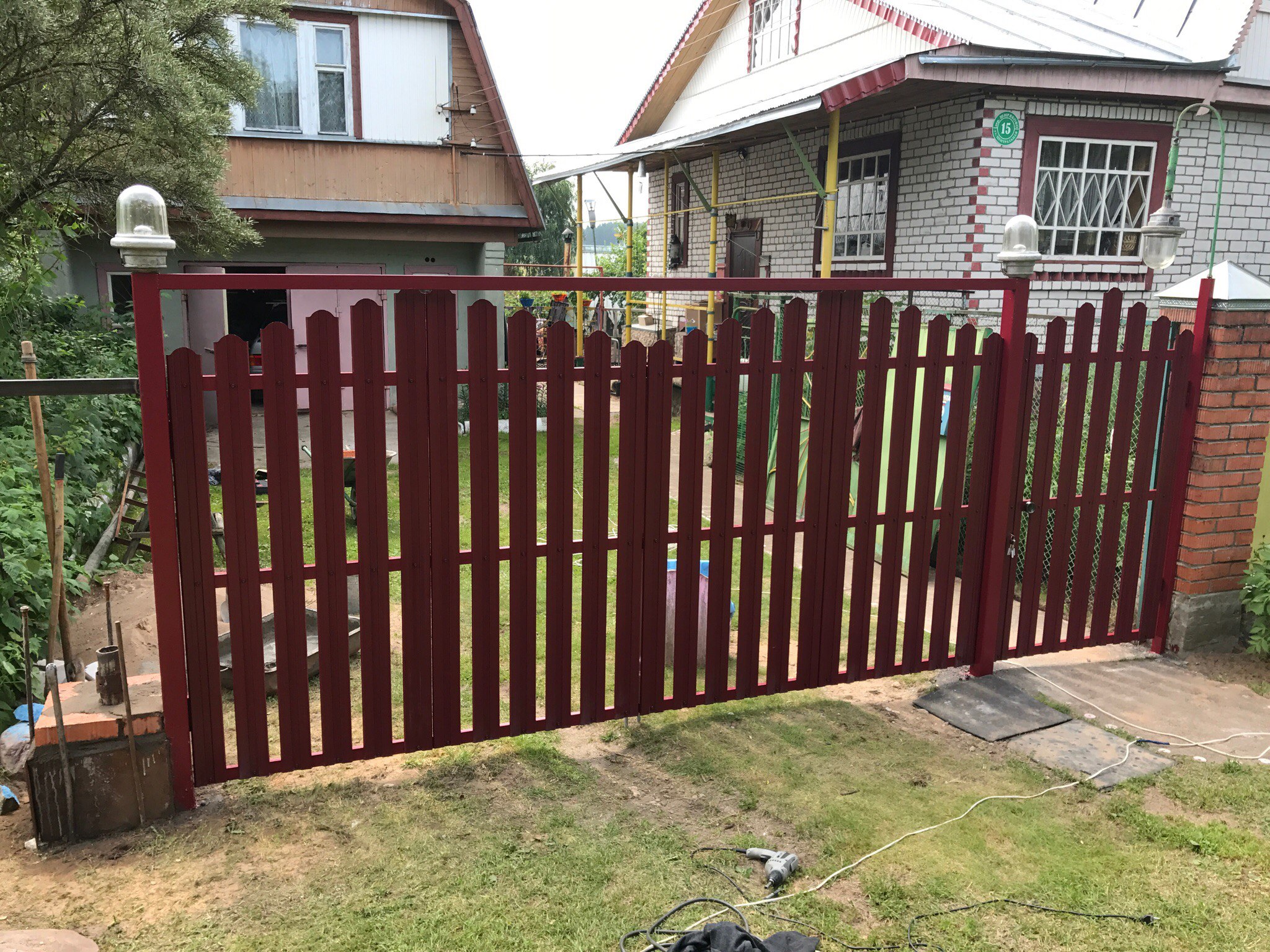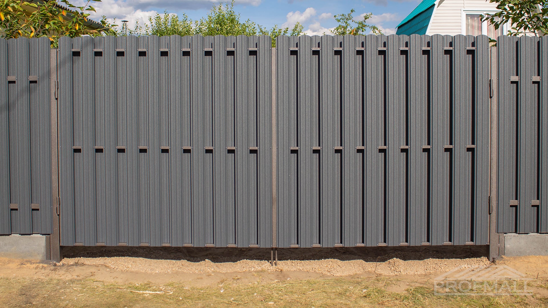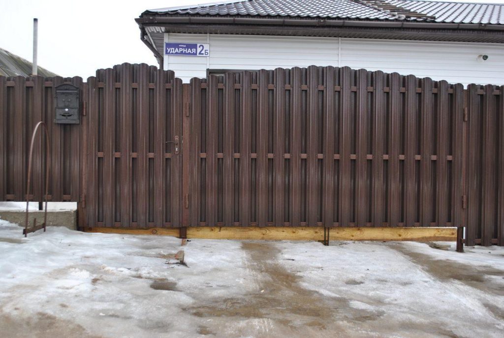 Ворота из евроштакетника распашные пример 2